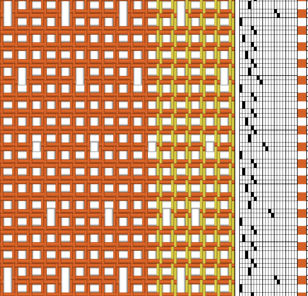 so I adjusted it for ease of treadling. For the final version I placed the stitchers every 11th & 12th pick.