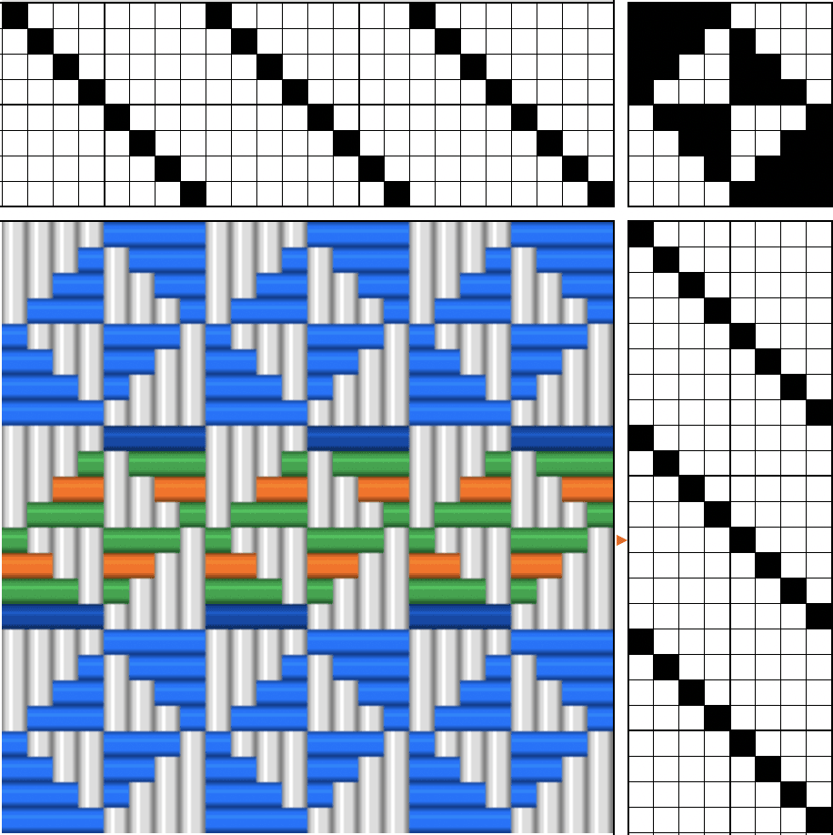 Here is the draft of the same twill as above, with one repeat worth of picks highlighted.